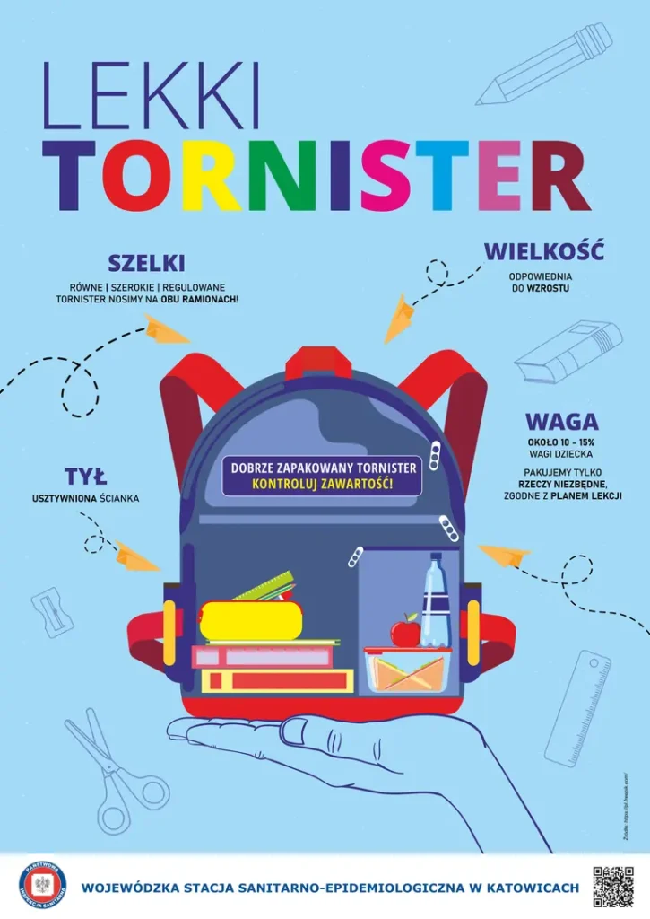 Nasza szkoła włącza się w kampanię edukacyjno-informacyjną „Lekki tornister”, zainicjowaną przez Państwowego Powiatowego Inspektora Sanitarnego w Katowicach. Głównym celem akcji jest profilaktyka wad postawy u dzieci i młodzieży poprzez zwrócenie uwagi na problem zbyt ciężkich plecaków.