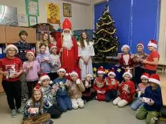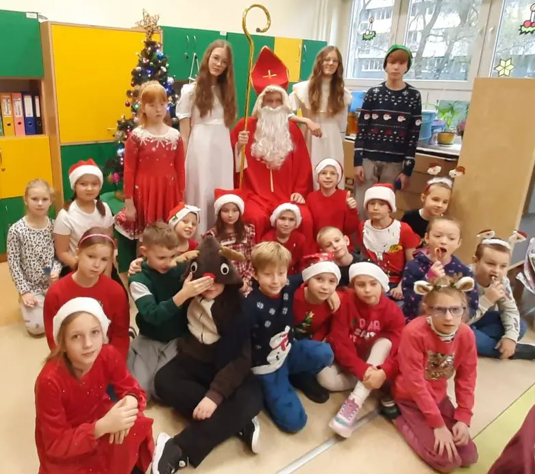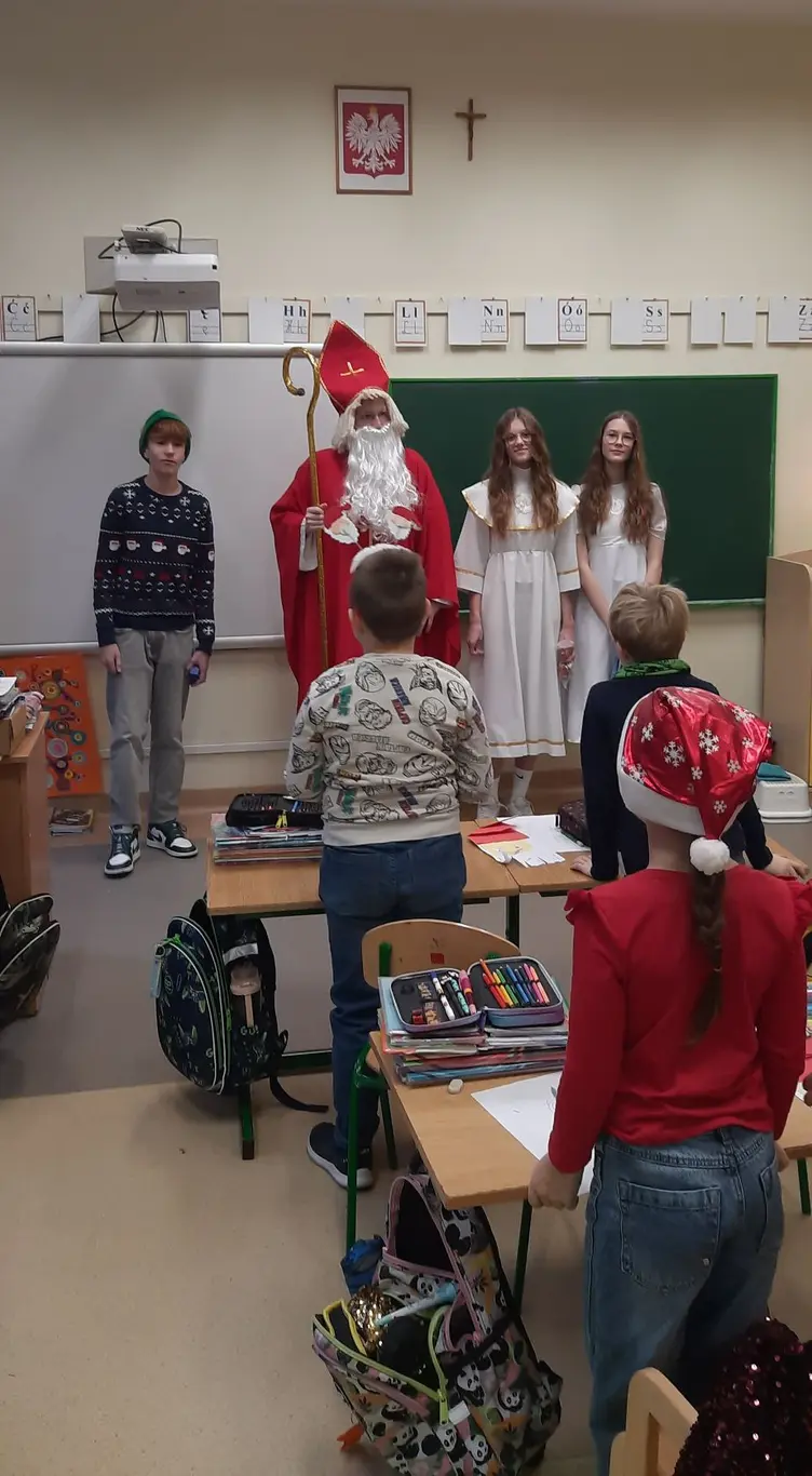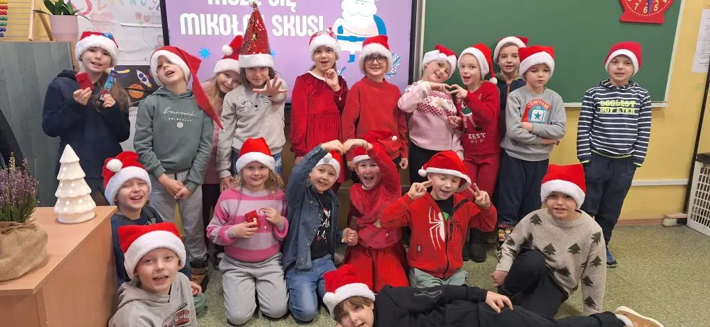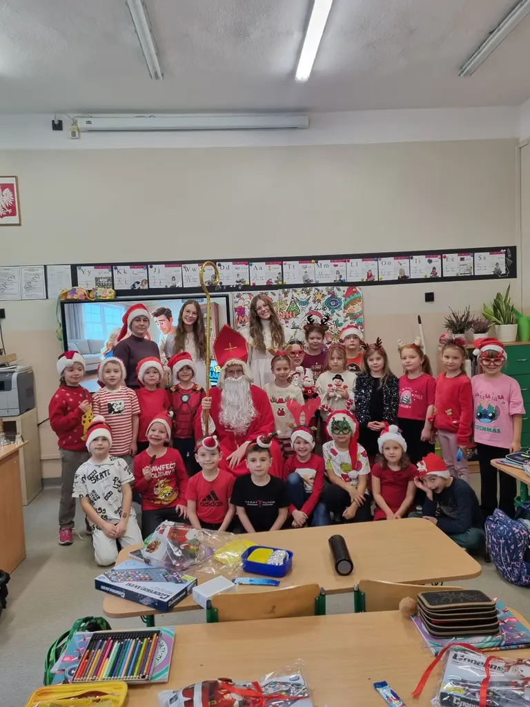 W piątek, 5 grudnia, nasza szkoła zamieniła się w prawdziwą mikołajową krainę! Na korytarzach zaroiło się od „małych Mikołajów” – to uczniowie klas I-III, którzy ubrani w czerwone czapki, z wielką niecierpliwością wyczekiwali najważniejszego gościa tego dnia.